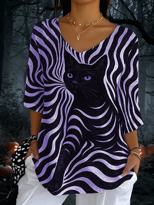 Kvinders kat Geometrisk kunst Print V-hals topper