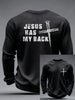 Mænds Jesus har mit rygkors tro Print Casual Waffle Lang ærme T-shirt
