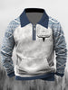 Mænds Vintage Western Cow Head Print Lapel Splicing lynlås Lange ærmer Sweatshirt