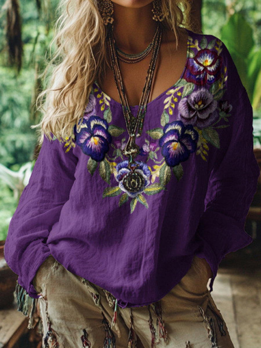 Retro boheme blomstret top til kvinder