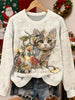 Gorgeous Christmas Cat Mønster Casual Lang ærmet Sweatshirt