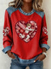 Kvinder Valentinsdag Denim Patchwork Toppe