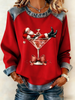 Kvindernes julemand sidder på et vinglas Denim Patchwork Top.