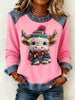Kvinders Casual Retro Western Sød jul Highland Cow Denim Patchwork Toppe
