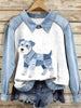 Kvinders Denim Patchwork Schnauzer hunde mønster sweatshirt