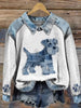 Kvinders dyr trykket Denim Patchwork Lapel Langærmet Sweatshirt