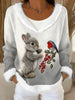 Kvinders Jul Bunny Print Fleece-Lined Toppe
