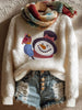 Kvinders jul kunst trykt flannel sweatshirt (Ingen tørklæde)