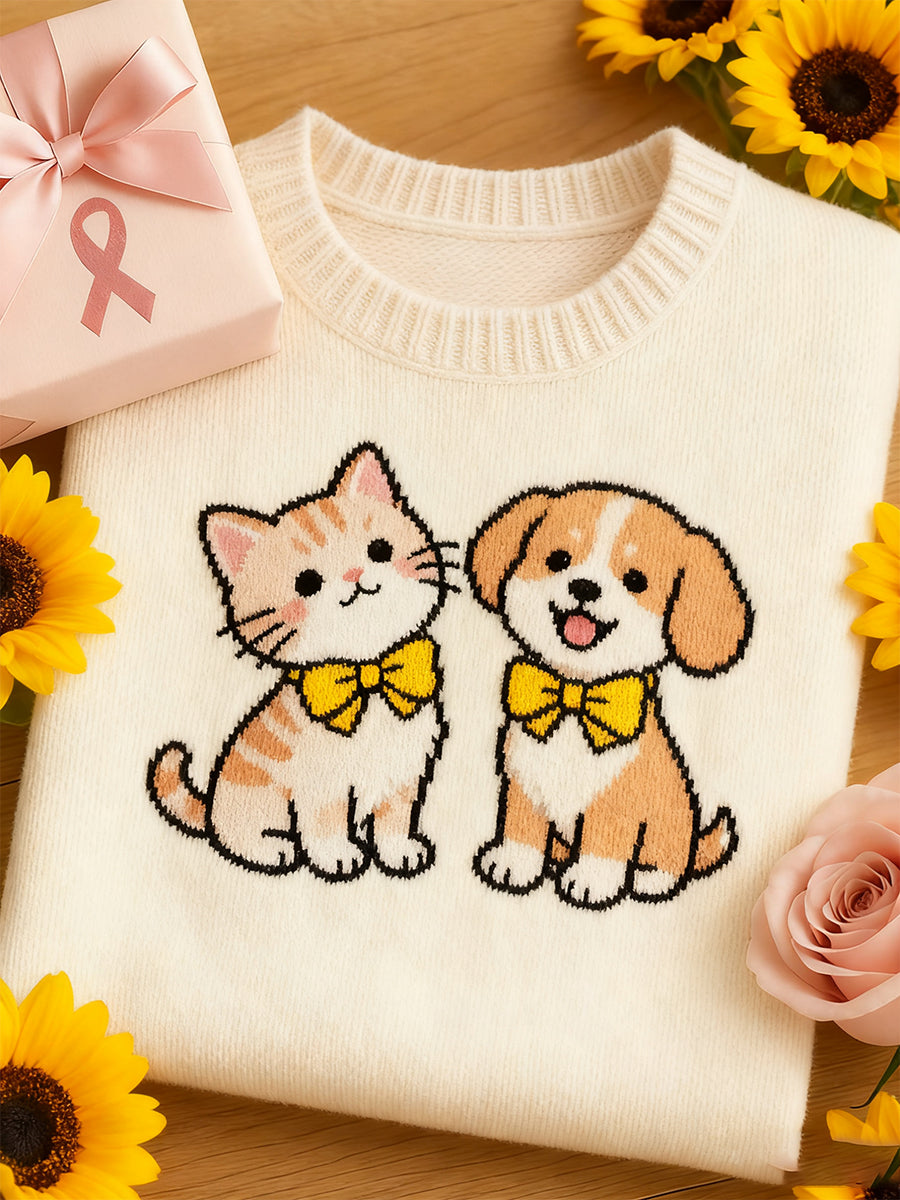 Kvinders kunstneriske dyr Print Comfort Strik Kort ærme Toppe