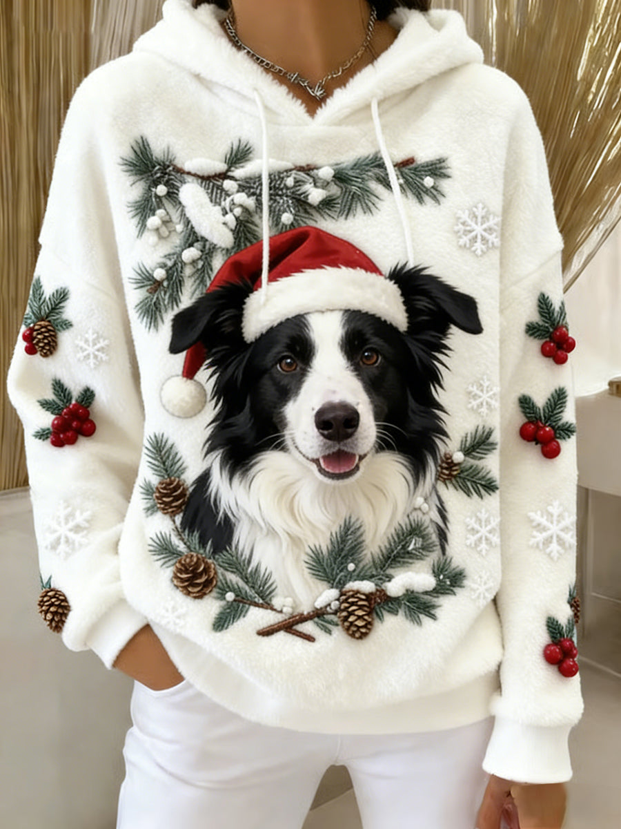 Kvinders Retro Animal Art Print Komfortable Flannel Hooded sweatshirt