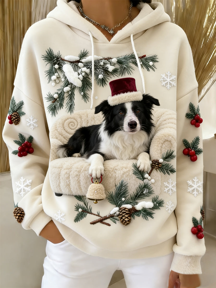 Kvinders Retro Animal Art Print Komfortable Flannel Hooded sweatshirt