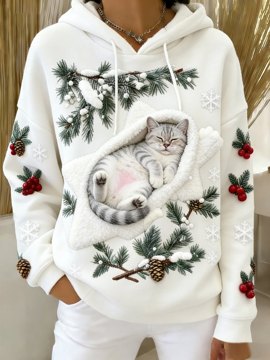 Kvinders Retro Animal Art Print Komfortable Flannel Hooded sweatshirt