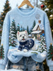 Kvinders Retro Animal Christmas Art Print Casual Flannel Toppe