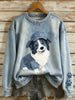 Kvinders Retro Denim Patchwork Animal Art Print Casual Comfort Langærme Sweatshirt