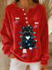 Kvinders Retro jul søde kat sokker Print langærme Flannel Sweater.