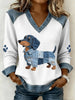 Kvinders søde blæk hund mønster Denim Patchwork Art V-hals toppen