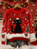 Kvinders Vintage Christmas Black Cat Printed Flannel Sweatshirt