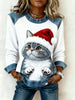 Kvinders Vintage jul kat Denim Patchwork Sweatshirt
