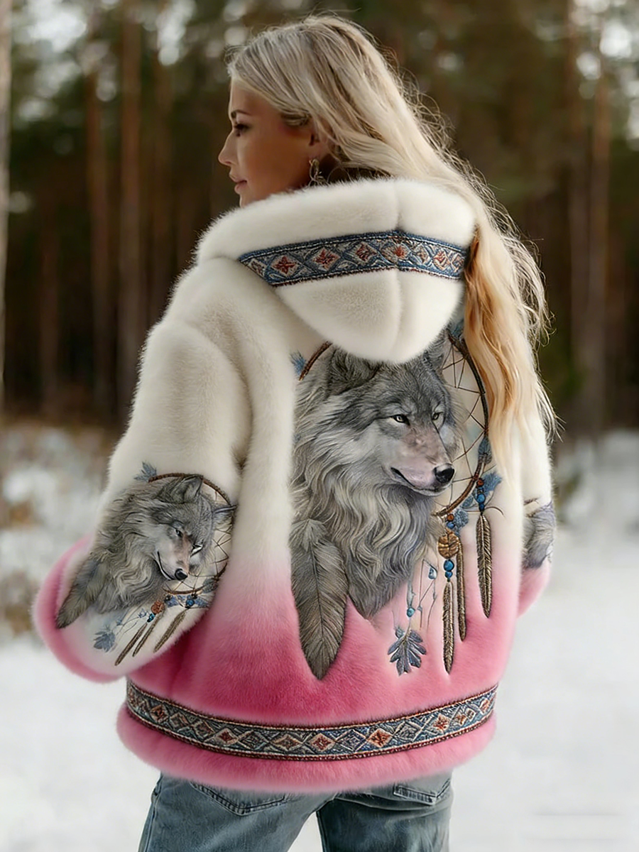 Kvinders Vintage Viking Celtic Knob Wolf Print Gradient Flannel Jake