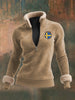Kvinnor svensk flagga tryck långärmade lamm hår topp
