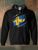 Mäns svenska flagga tryckckt Hooded långärmad blixtlås sweatshirt