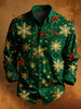 Retro juletræ- og snefnugprintet casual skjorte med lange ærmer