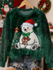 Smukke Santa Claus Mønster Casual Lang ærmet Sweatshirt